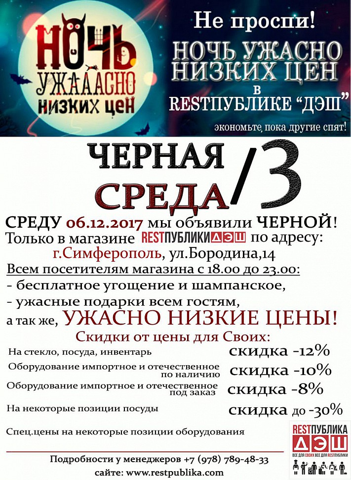 Именно такой баннер извещал о том, что в Среду 6 Декабря 2017 в Симферопольском филиале RestПублики ДЭШ должна состояться Ночь Ужасно Низких Цен!